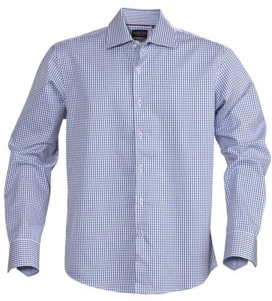 Herenhemd van hoge kwaliteit in gekamd katoen. Ruitjespatroon met contrastkleur onder de kraag, aan de knopenband, manchetten en neklint. Voorzien van extra versteviging aan de naden, kraag en manchetten. Easy-care behandeld voor makkelijk wassen en strijken. Oeko-Tex 100 gecertificeerd.